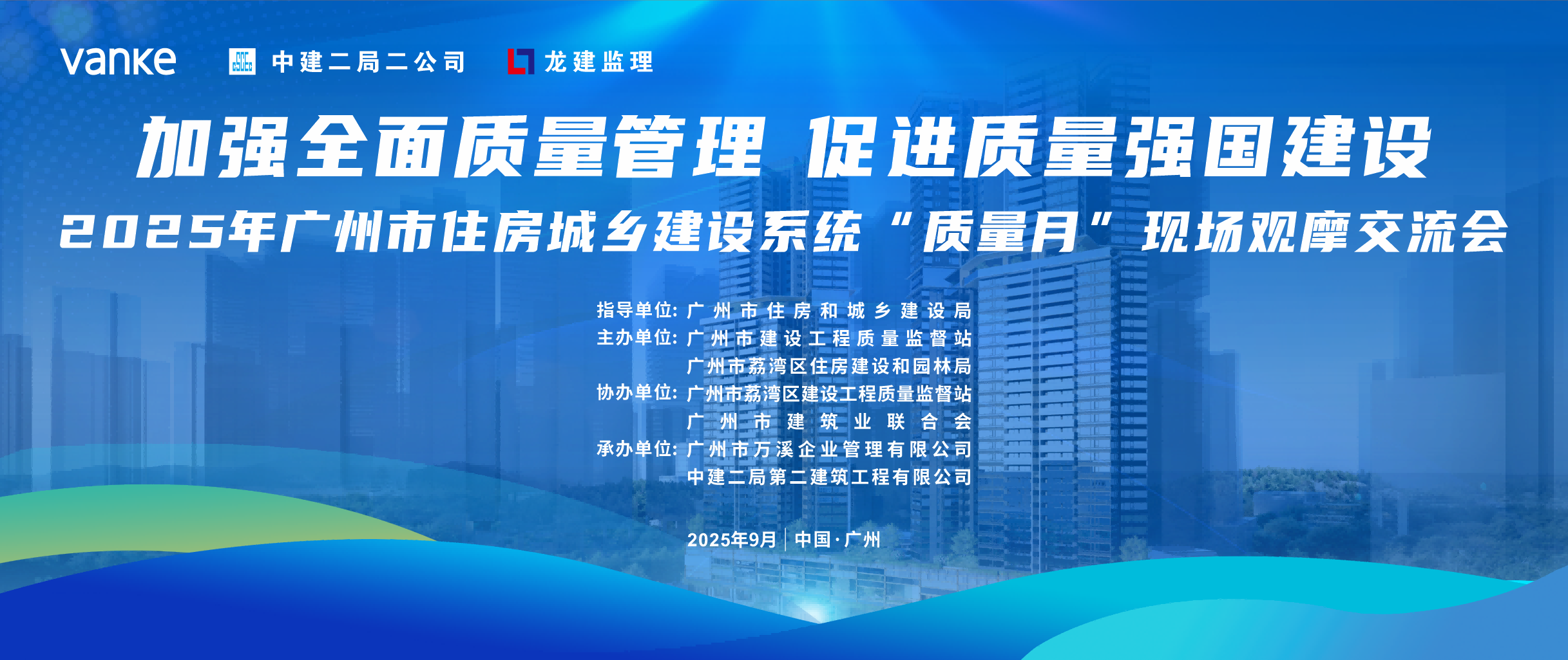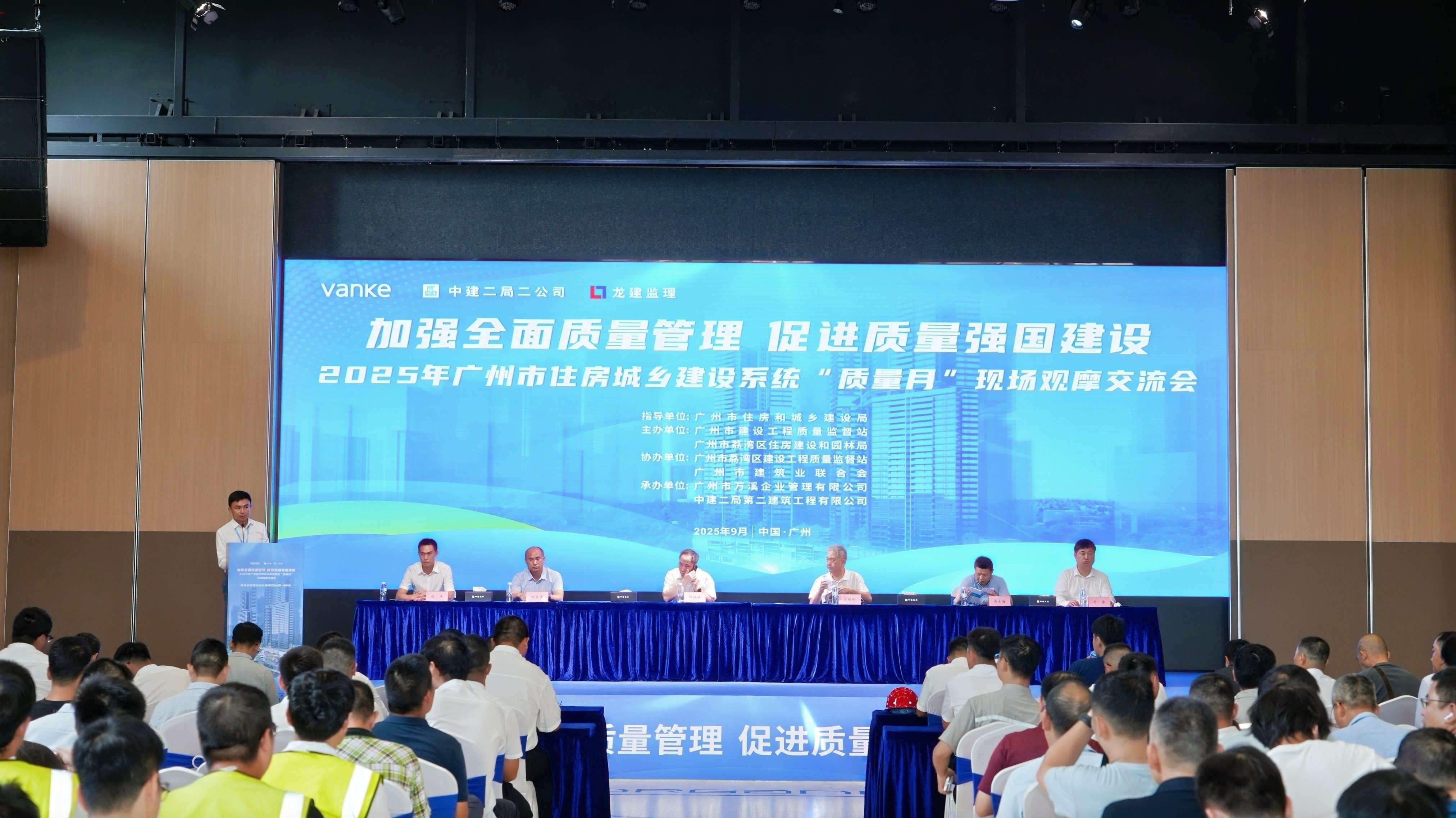 9月29日,2025年广州市住房城乡建设系统“质量月”现场观摩交流会于万科万溪荷花苑项目成功举办。本次活动由广州市住房和城乡建设局指导,广州市建设工程质量监督站、广州市荔湾区住房建设和园林局主办,广州市荔湾区建设工程质量监督站、广州市建筑业联合会协办,广州市万溪企业管理有限公司及中建二局第二建筑工程有限公司共同承办。活动吸引了市、区工程建设行政主管部门相关负责人,以及相关行业协会、施工单位代表近300人到现场观摩。