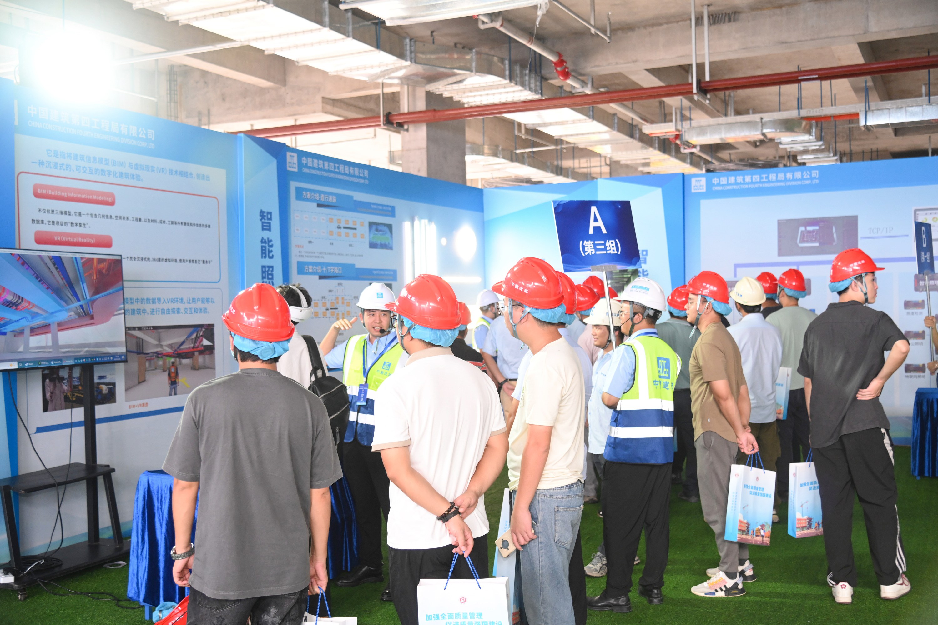 项目观摩设置了“企业文化长廊、智能建造区、土建样板区、机电样板区、智慧安全区、智慧展厅区、安全体验长廊”七大展区,全方位展示了项目在质量创优、安全标准化管理、科技创新、智慧建造等方面取得的优秀成果。该项目致力于打造“质量管理构建标准化管控体系”,从“项目质量管理体系”“PDCA质量管理循环”“匠心工程,回归本质”三个方面,全力建设人民满意的“好房子、好医院”。