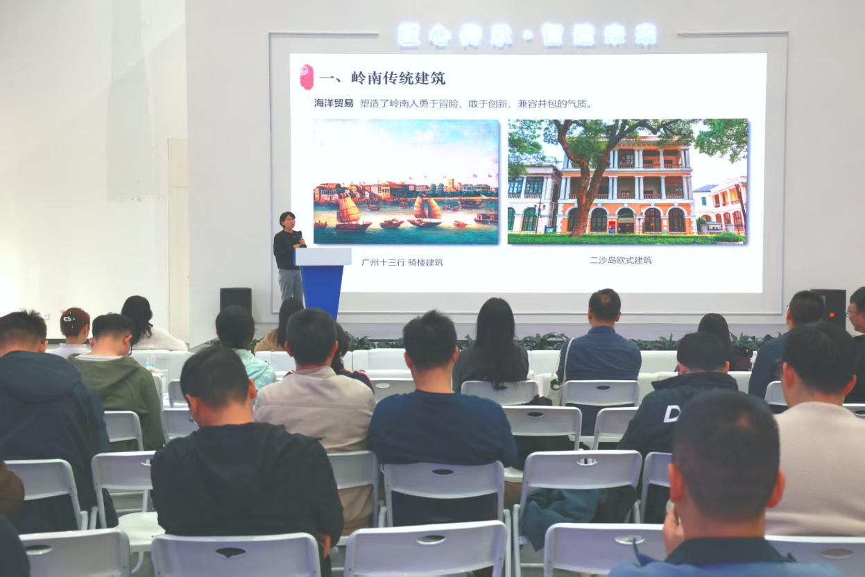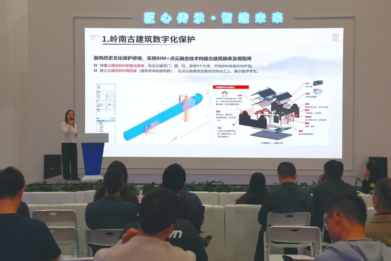在古建筑保护传承板块,广东建设职业技术学院古建筑工程技术专业负责人郭晓敏讲师带来“岭南传统建筑营建技艺——留住文化根脉的非遗传承”主题分享,从构造特征、工艺手法、材料运用等方面,生动展现了岭南古建筑的独特价值与活态传承路径;广州市城市规划勘测设计研究院有限公司越秀分院副院长宋杨博士聚焦“历史文化保护古建筑测绘”,展示了数字技术在古建筑“数字档案”建立中的创新应用,为文化遗产的永续保护提供了科技解决方案。