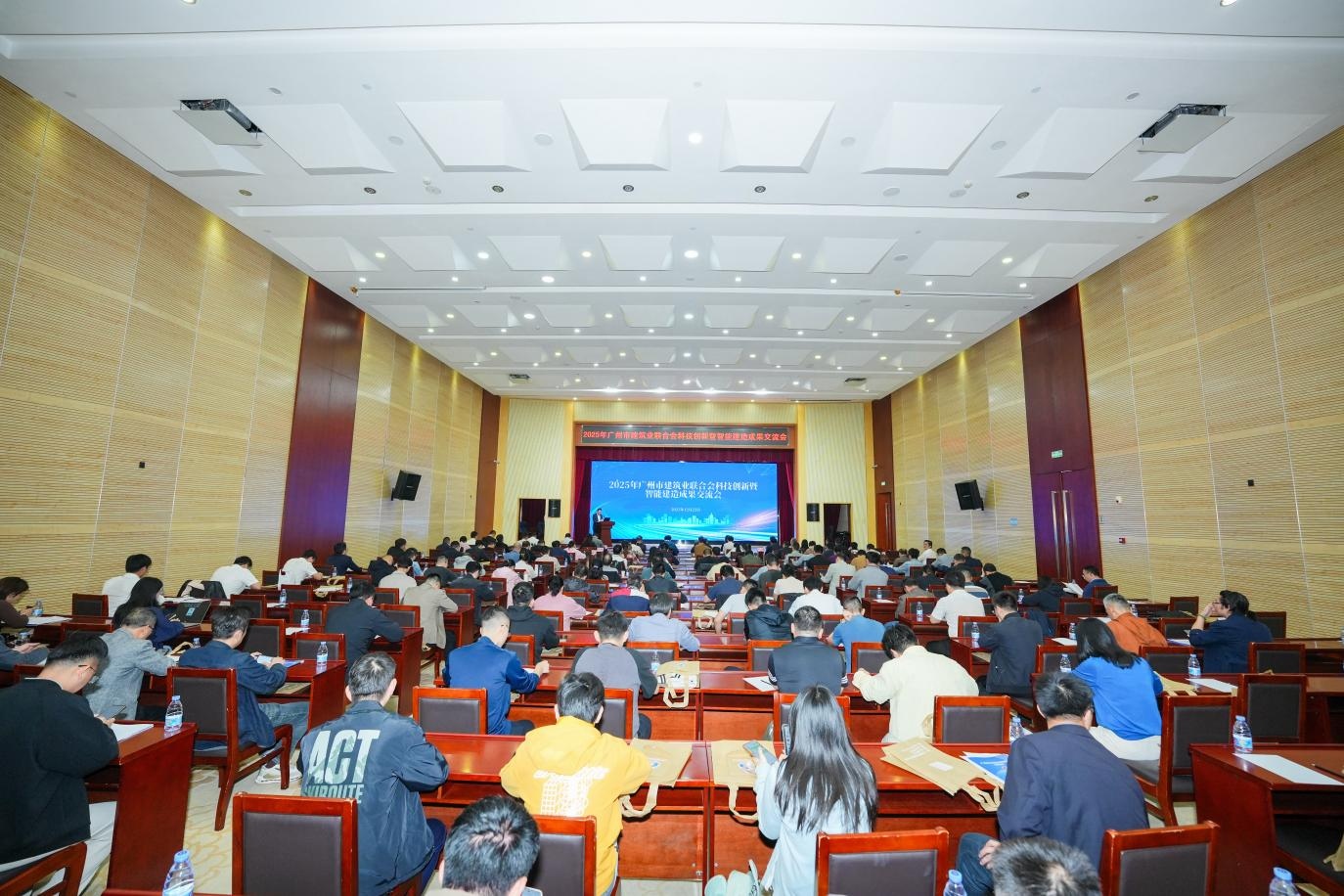 12月23日,2025年广州市建筑业联合会科技创新暨智能建造成果交流会在华泰宾馆成功举办。大会以“科技赋能智能建造·创新驱动工业建筑”为主题,紧扣国家战略部署与广州“12218”现代化产业体系建设要求,搭建起政策落地、成果转化、经验共享的多元平台,助力行业加速向工业化、数字化、绿色化转型,为建筑业高质量发展注入强劲动能。广州市建筑业联合会会长杨青、副会长兼秘书长张江华、副秘书长邵丹出席会议,各专业工作委员会负责人、高校专家学者、会员单位及科创赛事获奖代表齐聚一堂,共话行业创新发展。