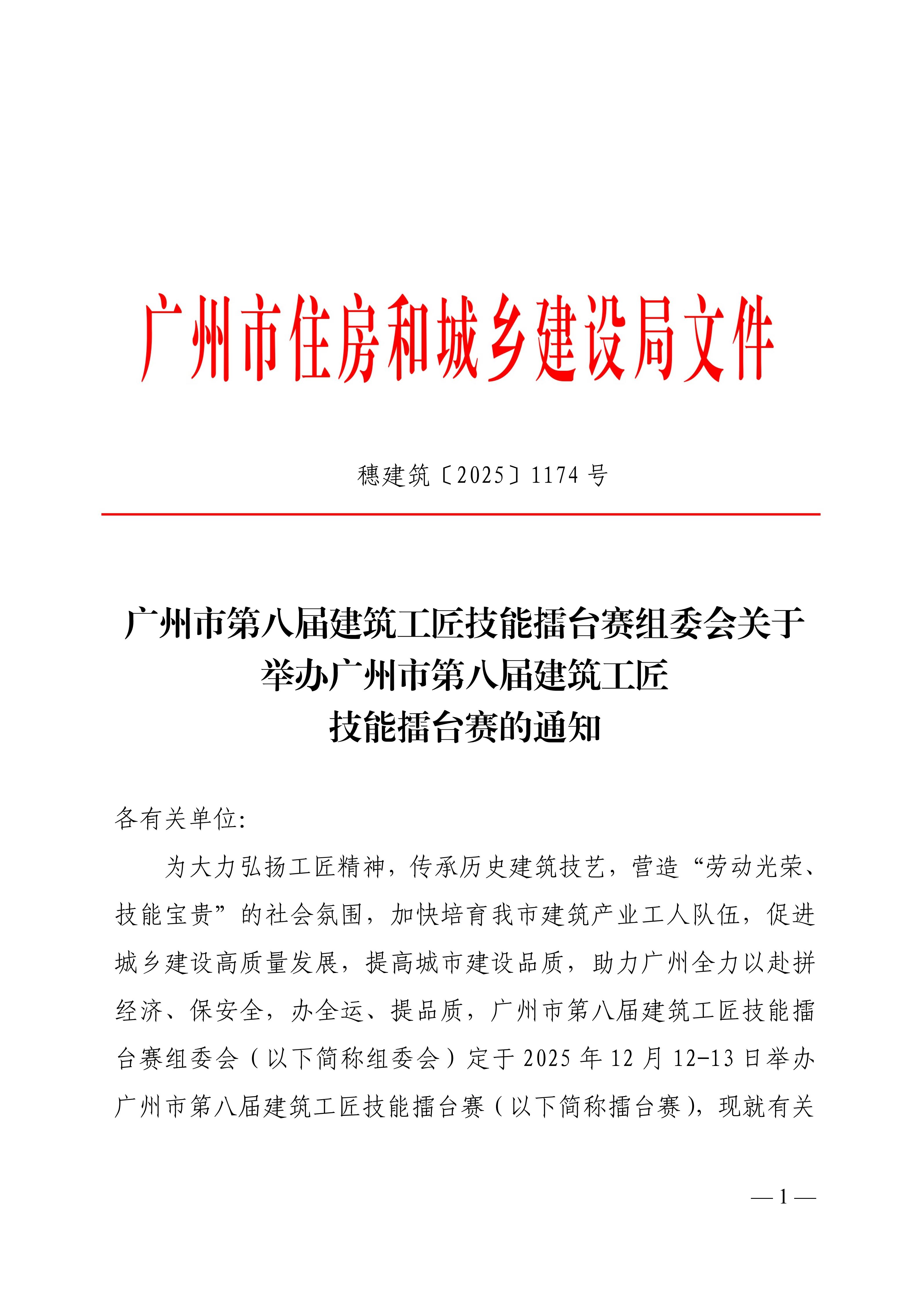广州市第八届建筑工匠技能擂台赛的通知(PDF)